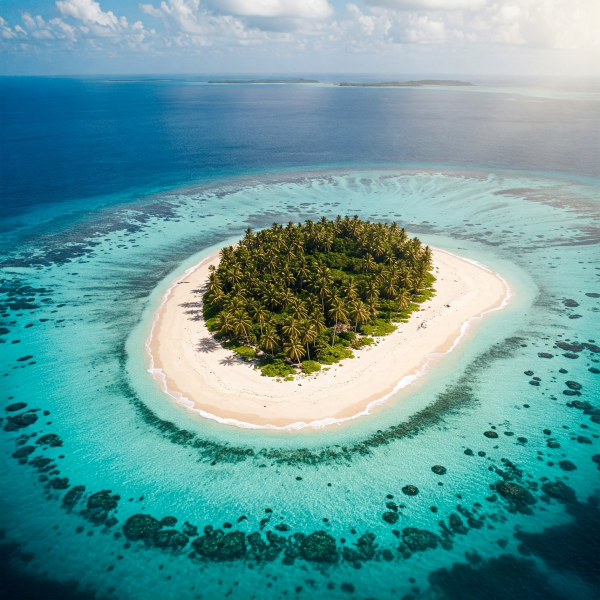 Ab geht es. Sie lassen das bekannte Land unter sich zurück und fliegen weiter in Richtung Küste. Nach einer weiteren Flugstunde setzt der Helikopter zur Landung an. Vor Ihnen befindet sich eine herrliche Insel mit Palmen und weißem Sandstrand.